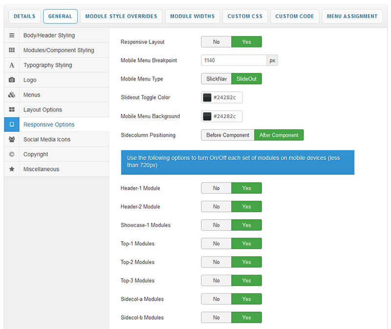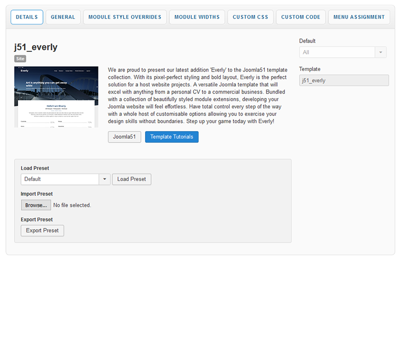 With a new and improved template parameters we have combined some of the most used and asked for features within an easy to use and beautifully styles interface. With these parameters you can now quickly customise your template to your own needs and have your site up and running in a matter of minutes.