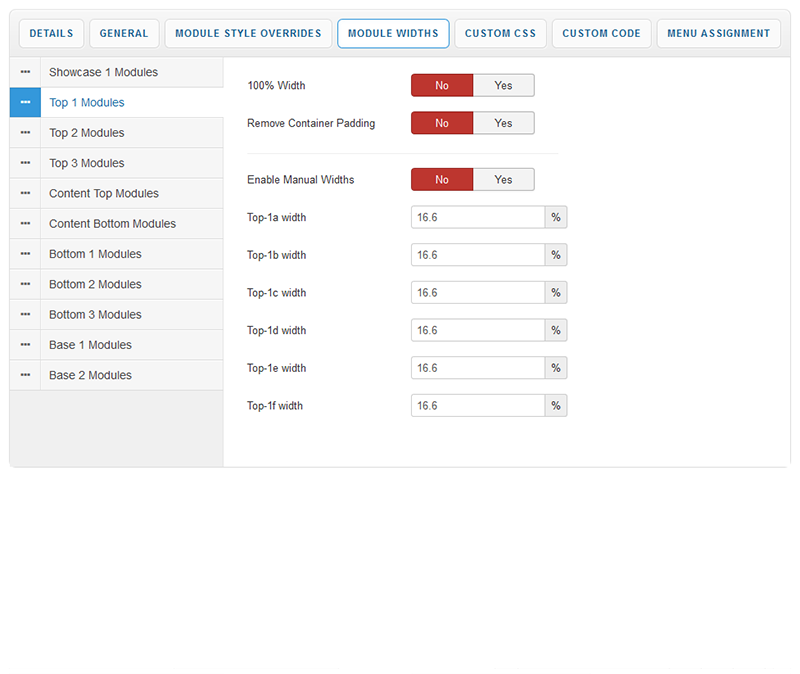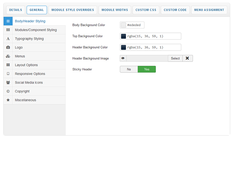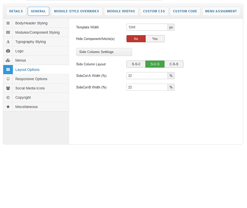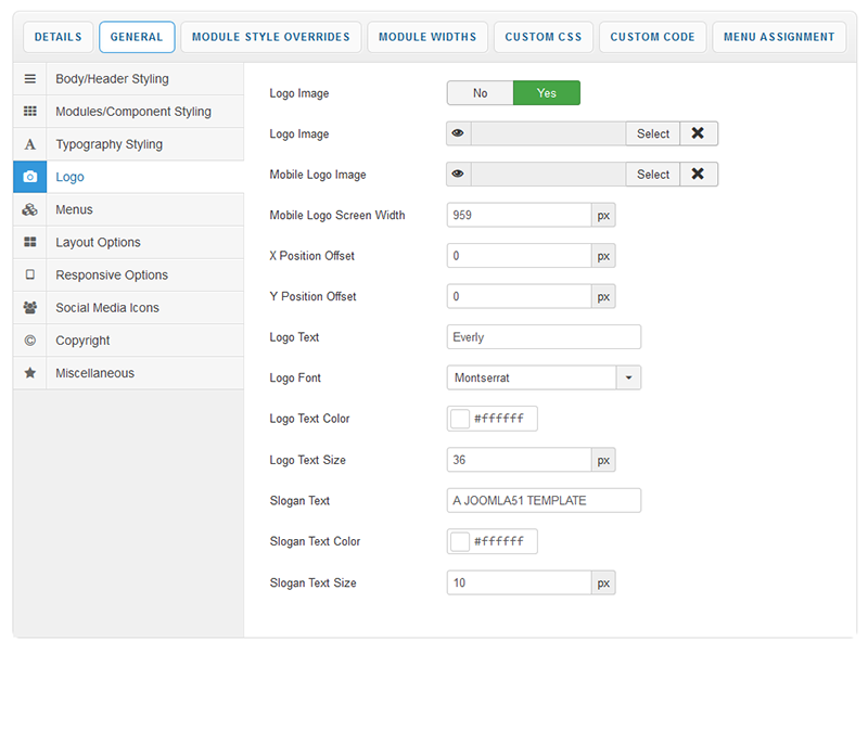 Your template parameters can be access directly from your Template Manager giving you access to a host of features including a selection of template styles, some colour choosers to help customise your template headers and links, a number of layout options and easy to use logo settings.